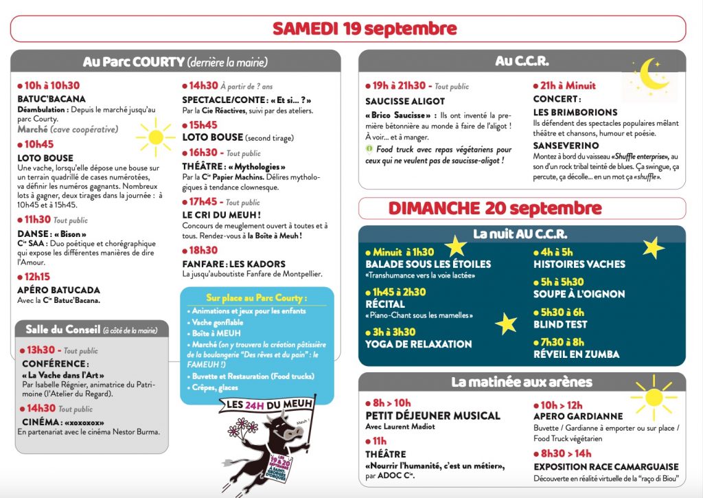 • Des spectacles et animations à participation libre (sauf le cinéma et le théâtre), sans billetterie le samedi 19 septembre de 10h à 20h et le dimanche 22 septembre de 8h à 14h
